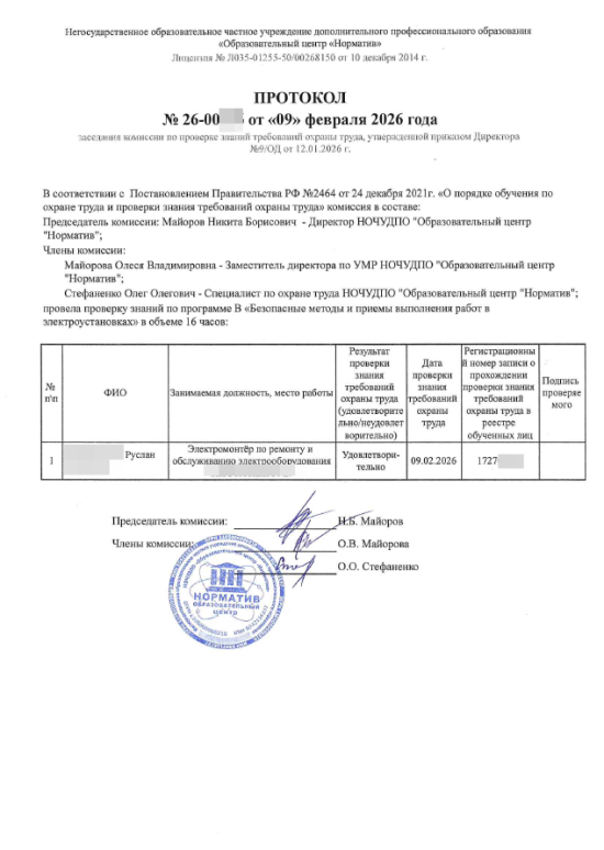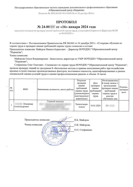 После обучения выдаются протоколы проверки знаний с внесением в ЕИСОТ Минтруда.