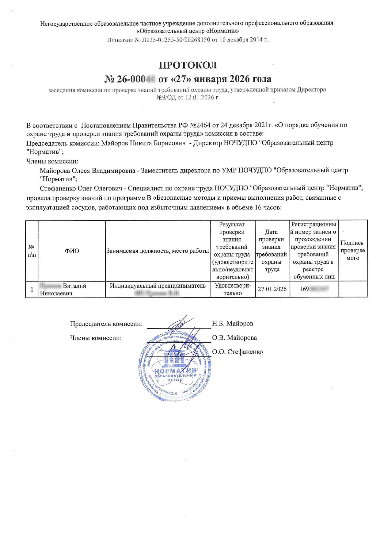 Документ об обучении: Протокол проверки знаний с внесением в ЕИСОТ Минтруда