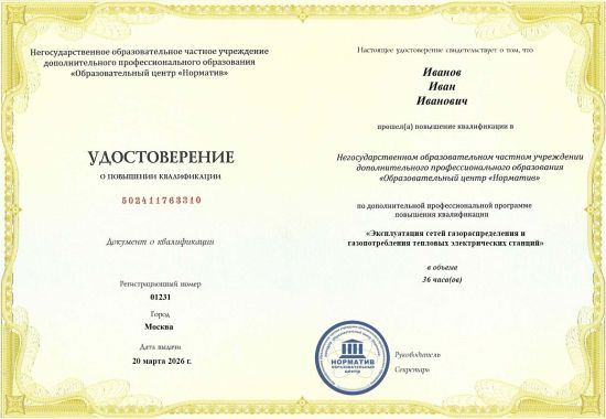 Полное наименование: Повышение квалификации по программе «Эксплуатация сетей газораспределения и газопотребления тепловых электрических станций (Б.7.2)»